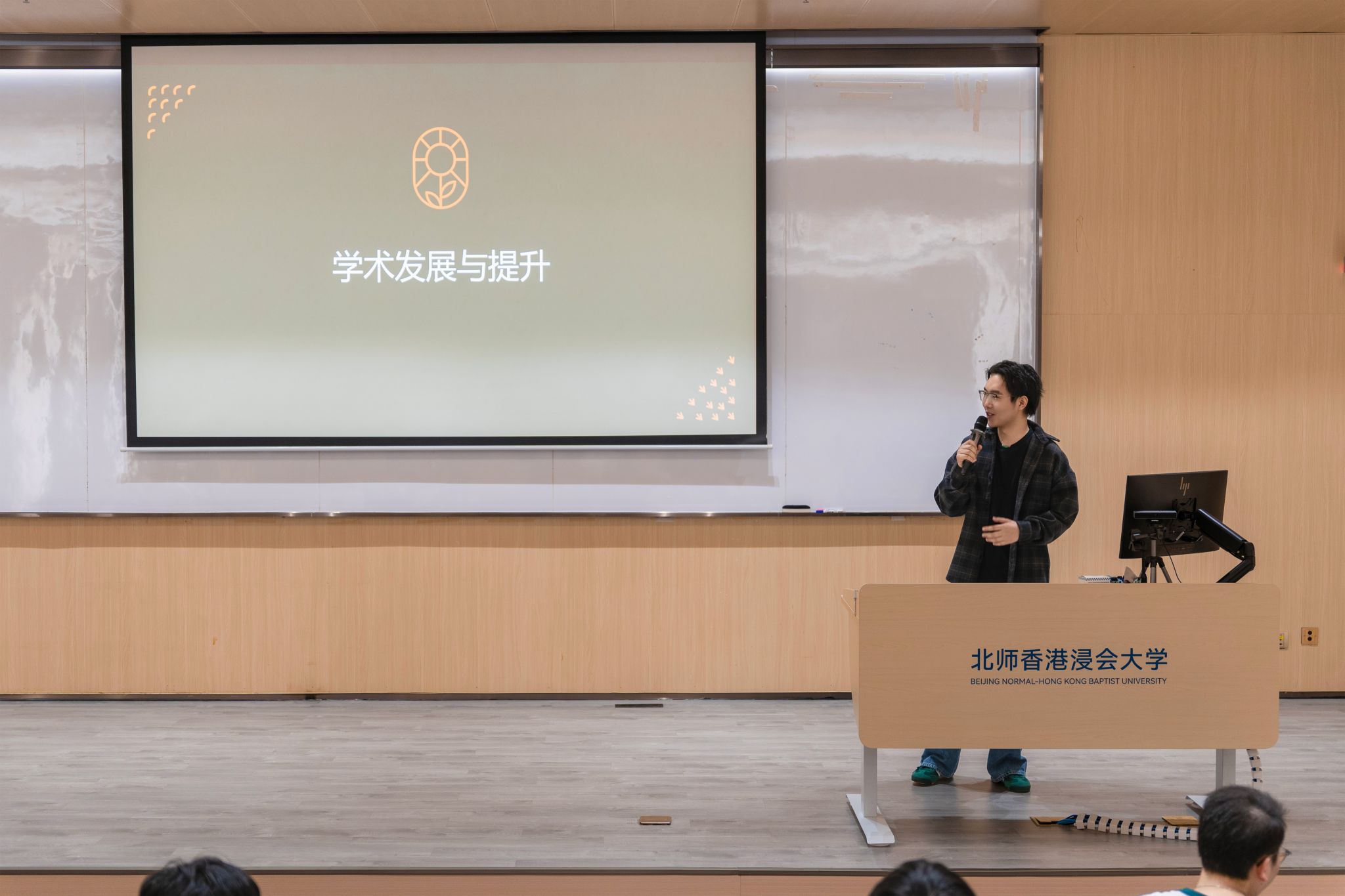 2024届毕业生、现北师香港浸会大学研究助理王鹏分享了论文写作的流程和注意事项,系统地讲解了如何选择研究方向和具体研究问题、如何撰写和发表科研论文。他认为:如果想要做科研,第一件事情就是放弃掉百米冲刺的心态,让自己变成一个有耐心的工匠,用时间和耐心去打磨论文。