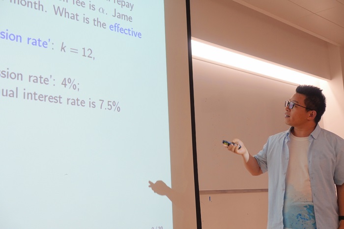 朱圣鑫博士作为一名应用数学背景在数据科学专业任教的老师,用大量实例给同学们说明了如何“应用”数学。朱老师一开始就从具体数字入手,抛出“如何买车更优惠”的问题,引入数学在计算“年费率”“级数”上的应用;随后分别以“如何预测COVID-19的疫情拐点及最终感染人数”为例提出“数据+模型”的分析方法;提出用数值优化的方法解决图像匹配问题;分享了如何用IMU和GPS实现自动导航和自动驾驶等实例。