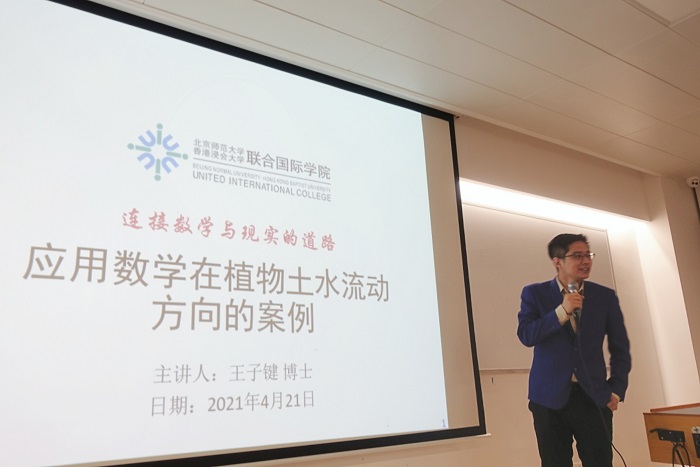 王子键博士从他研究的方向入手,讲述了“应用数学在植物土水流动方向的案例”,探讨了在研究课题时遇到问题要如何用数学方法做研究。王老师从三个维度,讨论了在实验中“归纳推广”,通过收集数据“统计拟合”,最后提炼模型“推导简化”,使用这些数学方法来“研究现实”。