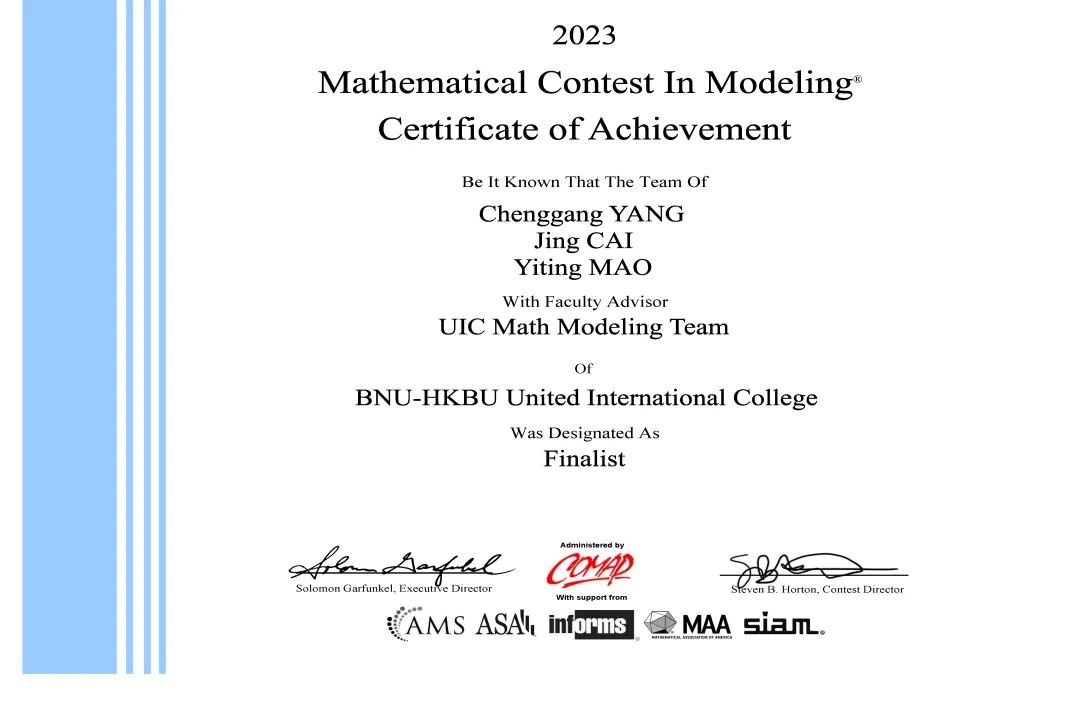 喜讯 | UIC学子在2023年美国大学生数学建模竞赛再创佳绩