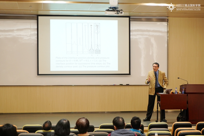In his talk, Prof Zhang explained the different theories to predict the growth rates and amplitudes of unstable fingers. He said that his theories are applicable for compressible fluids, for systems with arbitrary density ratios, for arbitrary incident shock strength, and for entire time domain from early to late times.