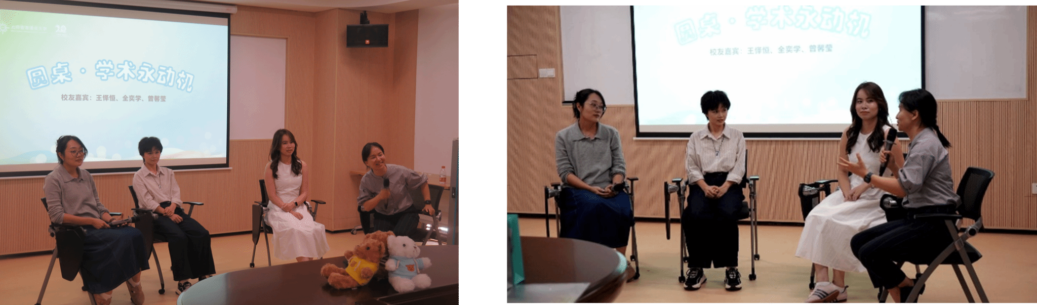 第三轮的分享交流由三位继续深耕学术的校友王怿恒、全奕学与曾馨莹带领,分享了科研道路的酸甜苦辣。三位学姐分别处于大学讲师、博士后以及博士在读生的不同阶段,却有着共同的感悟:学术之路并非坦途,而是一场不断探索与自我发现的旅程。学姐们用自身的感受,悄然影响着在场的朋友们。或许有人还在犹豫是否想要继续深造、或许有人不确定学术方向、或许有人疑惑于成长路上能够做出的努力,校友们分享的决策心得、提供的科研实习机会等,都无疑给了在场校友和学弟学妹亮起一盏学术的灯。校友们在试探与深入中逐渐找到真正的兴趣所在,也提到在这段漫长的过程中,家人和朋友的支持同样至关重要。