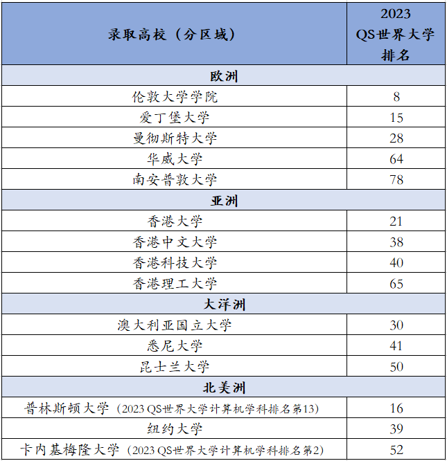 据不完整统计,各地区拿到数量较多且2023 QS世界大学排名靠前的offer