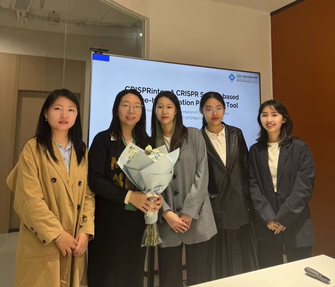 马思嘉(右一)与FYP导师王丹(左二)及老师同学合影