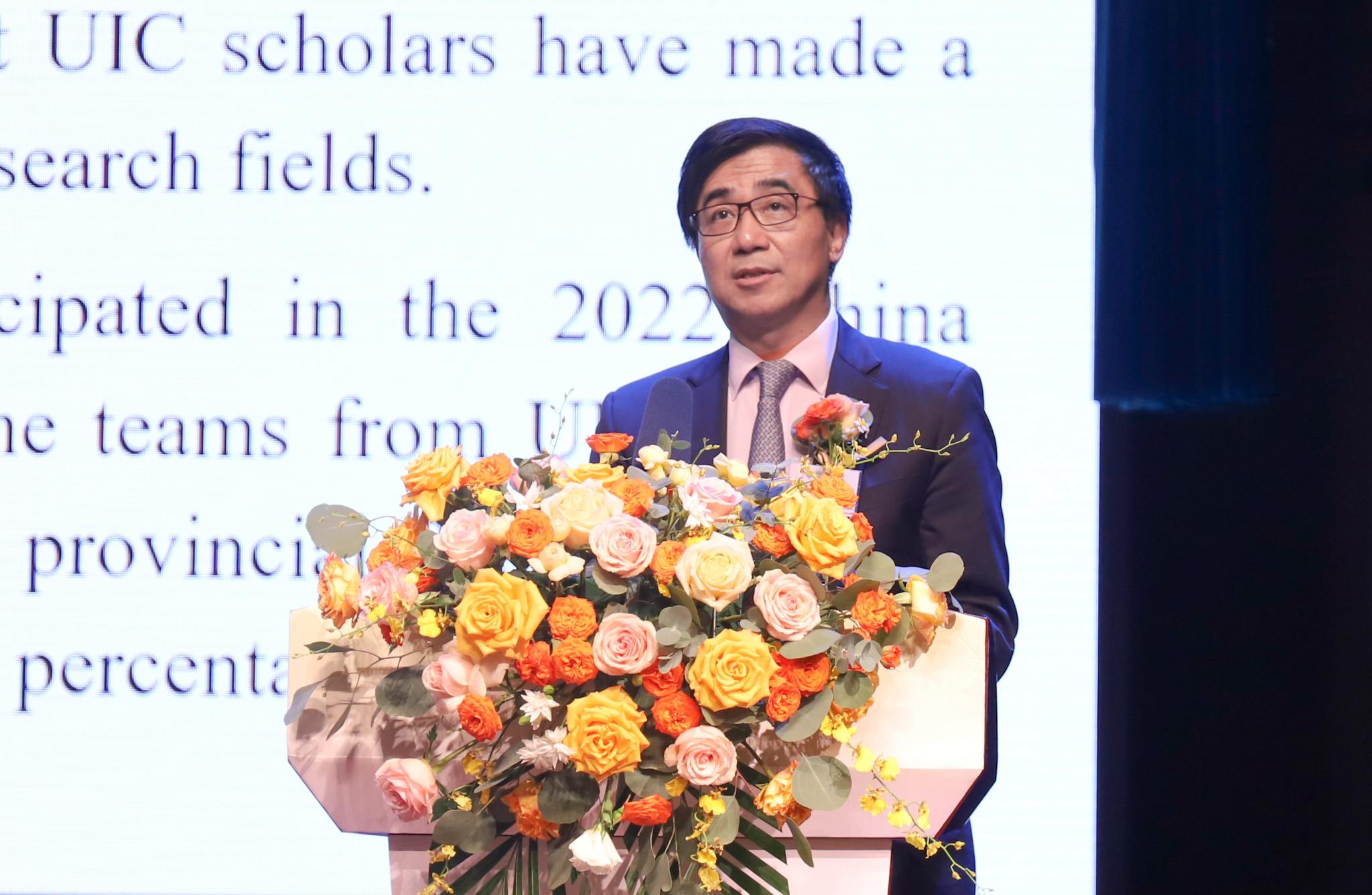 UIC President, Member of the Chinese Academy of Sciences and Fellow of the European Academy of Sciences Prof Tang Tao shared the development of UIC campus construction and the achievements of teachers and students in 2022 with the audience.