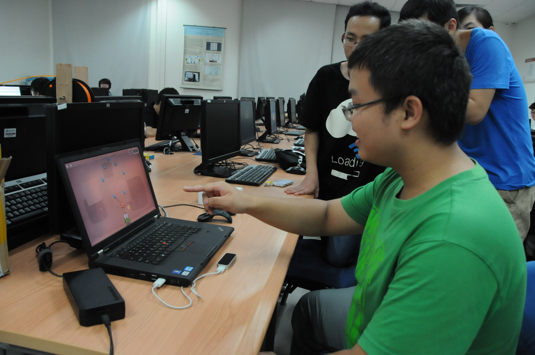 Seven teams presented and demonstrated their works during the exhibition. They focused on innovative research areas such as robotics design, Android apps, kinect games, leap motion interaction, and 3D printing.