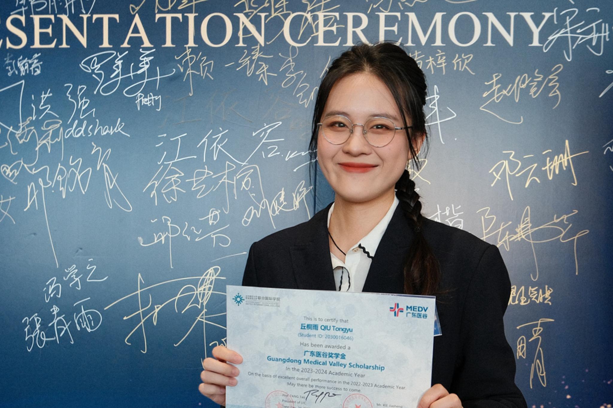 Qiu Tongyu at UIC's scholarship presentation ceremony