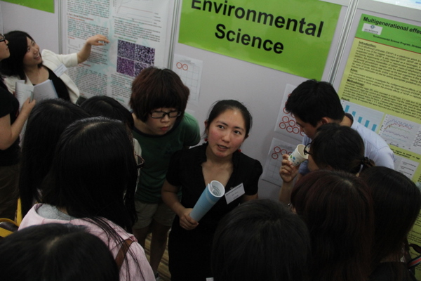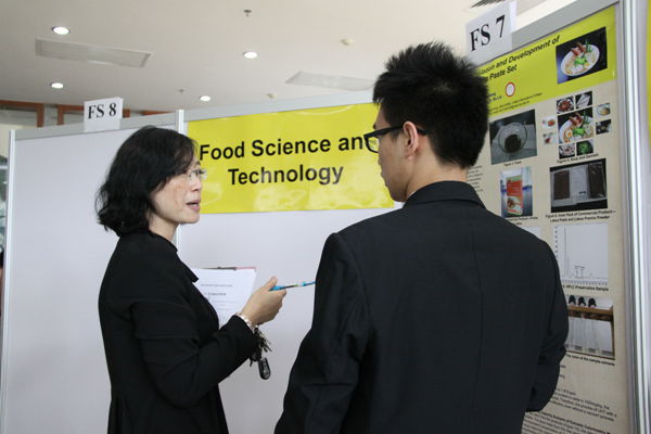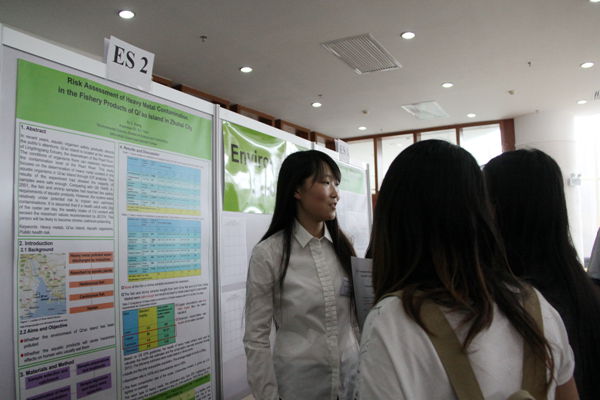 Zheng Zhongdaixi, who earned the Best Poster Award, assessed heavy metal contents in some fishery product samples from Qi'ao Island in Zhuhai. "I examined copper (Cu), zinc (Zn), nickel (Ni), chromium (Cr), lead (Pb) and cadmium (Cd) among 11 species of fish, one species of shrimp and one species of oyster, and the study showed that the oyster samples were at risk of contamination by Cu and Cd," said Zheng, who is a student in the Environmental Science Programme.