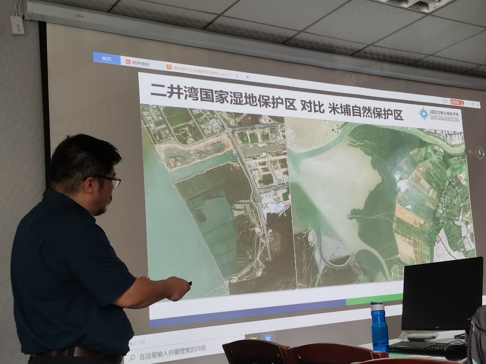 詹博士曾任中国香港特区渔农自然护理署鸟类保育主管,并参与湿地保育工作以及香港湿地公园建设,具有20多年生态研究与自然保育经验。针对此次培训主题,特别总结整理了国际重要湿地——香港米埔内后海湾湿地的规划和管理经验,为横琴二井湾湿地的规划建设提供参考。