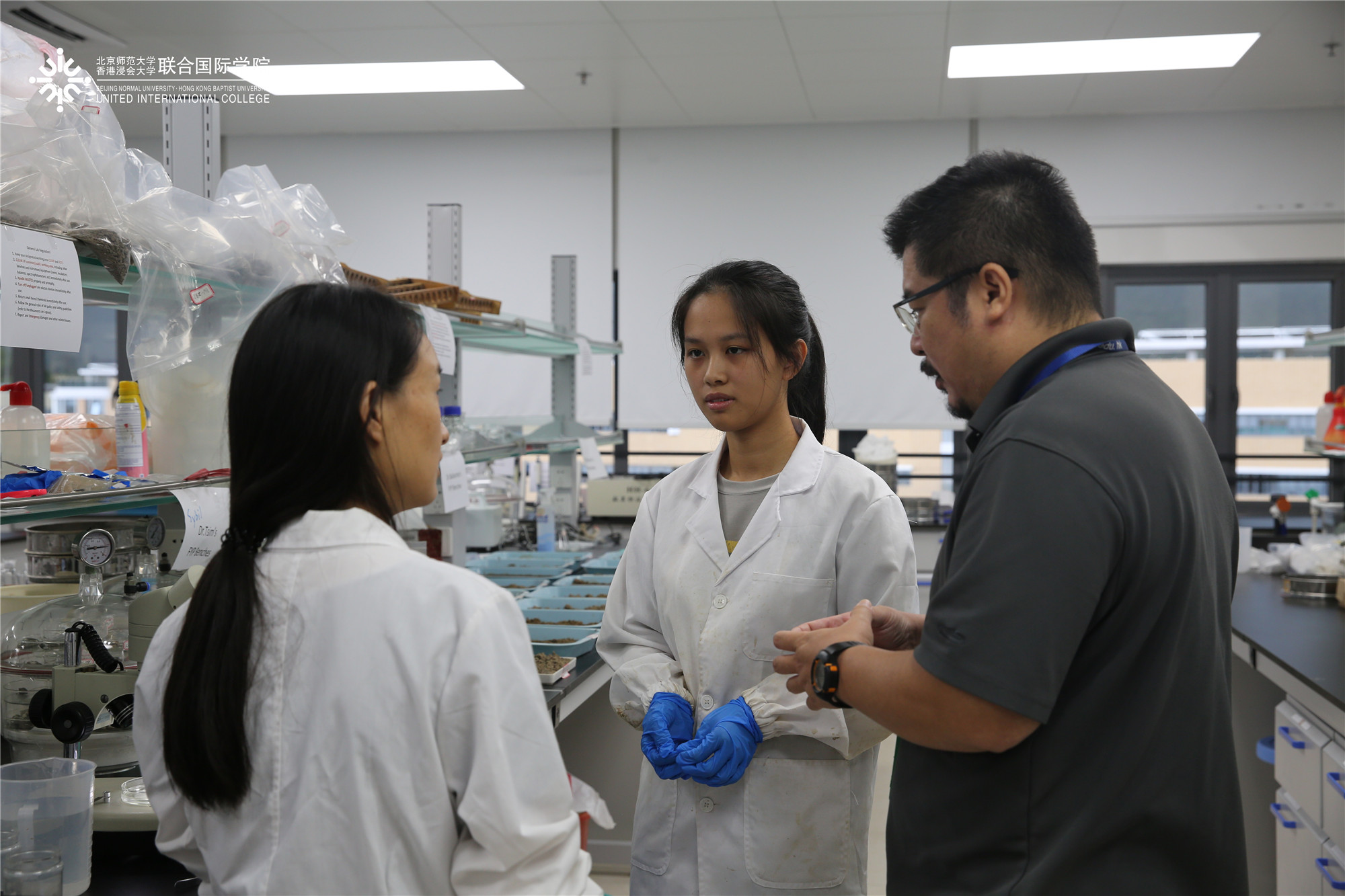 环境科学专业的詹肇泰博士是肖婉琦和梁凌紫FYP的指导老师。他表示,暑期学生留校做FYP遇到问题随时可以安排跟老师见面,老师也会根据自己的经验给予他们方向性的指导。除了学生,实验室助理经理吴志辉、导师陈曦、龚琴和何石媚,根据学生的不同需求来提供技术协助并保证实验室的安全。