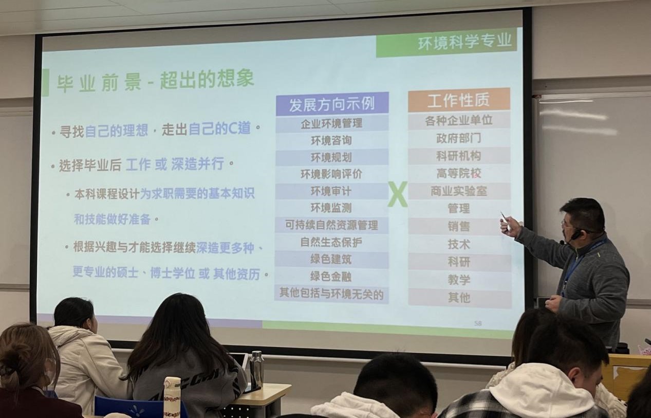 紧接着,詹博士展示了往届优秀毕业生的案例分享,具体说明环境科学毕业生们的人生规划和跨领域能力。随着越来越多的企业着力于发展环保与可持续发展,环境科学毕业生有着非常可观的前景和灵活性。