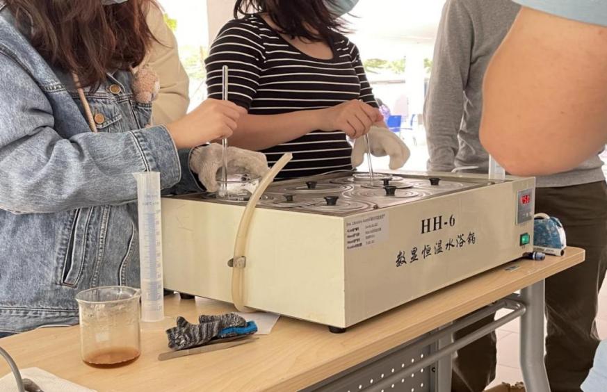 在洗手液制作活动中,UIC师生积极参与,在工作人员的协助下,采用绿色环保的茶皂素作为主要配方(小秘密:那是由环境科学大四学生和博士研究生亲自从植物废渣里提取出来的环保产物),并通过一系列标准操作成功制取出一瓶瓶“专属”洗手液。大家都在活动中学到了变废为宝的知识,也收获了快乐!