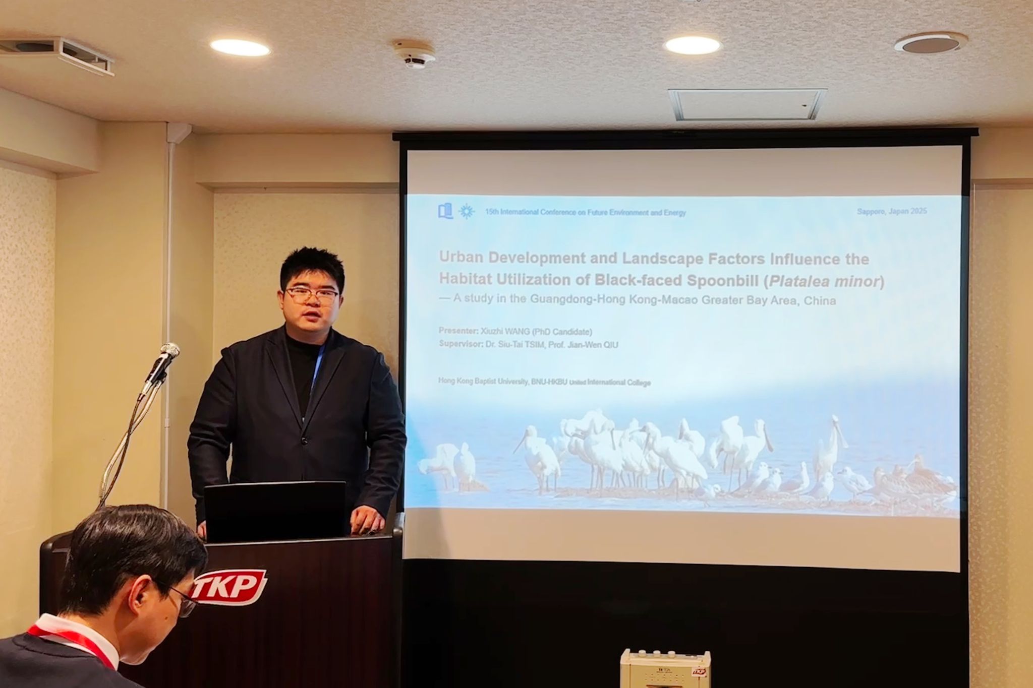 Wang Xiuzhi, a PhD student majoring in Environmental Science at the Beijing Normal-Hong Kong Baptist University (BNBU), attended the conference and delivered a presentation titled "Influence of urban development and landscape factors on habitat utilization of the Black-faced Spoonbill (Platalea minor): A study in the Guangdong-Hong Kong-Macao Greater Bay Area, China" in the sub-forum on "Environmental Pollution Monitoring and Ecological Restoration." He shared the recent conservation research conducted by his research team on the critically endangered Black-faced Spoonbill in the Guangdong-Hong Kong-Macao Greater Bay Area and was awarded the Best Presentation Award in the sub-forum.