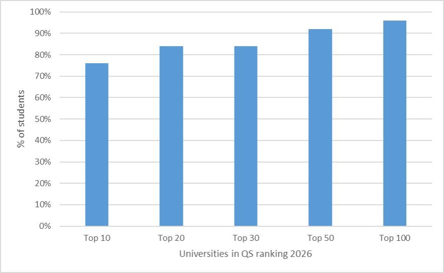In terms of the QS ranking (2026) of the admitted universities, 76% of the graduates who chose to go on to higher education were admitted by the top 10 QS universities, 84% by the top 20 QS universities, 92% by the top 50 QS universities, and 96% by the top 100 QS universities, which is a new record high in each of these categories!