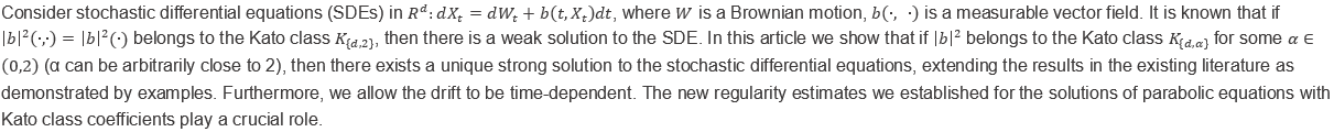 讲座 | Strong existence and uniqueness of solutions of SDEs with time dependent Kato class coefficients