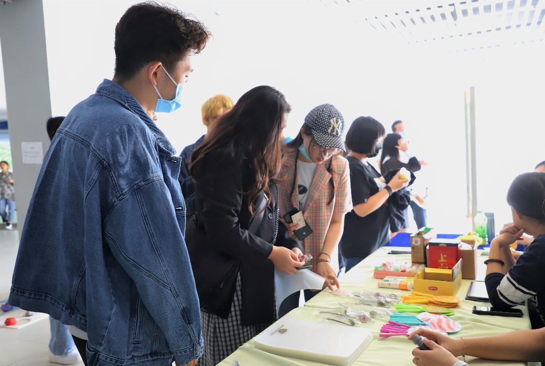 除了海报讲解之外,活动还设置了丢沙包、顺口溜和“不能说”三种趣味小游戏来帮助同学们在紧张的期中考试中缓解压力获取快乐。多人在线的Kahoot it 知识竞答环节吸引了大量同学前来参加,通过问答环节参与者不仅增长了生活健康小知识还有机会获得精美小礼品。活动全程采用印章积分制来进行奖品兑换,奖品丰富多样,包括纪念款书签、小扇子、文件夹、解压小玩具、咖啡、茶包等。