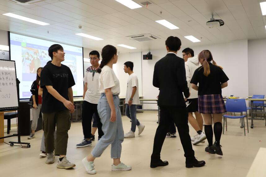 接下来就到了紧张刺激的游戏环节。在夹气球跑的游戏中,参与者需要将气球背对背加紧运送到指定位置,再弄破。助理导师张译方(右前)和李旭(右后)与王俊雄同学(左前)和他的小伙伴(左后)进行了友好的PK。最终“导师组”获得了胜利,而王俊雄同学(右)和他的小伙伴程方立(左)由于PK失败,接受了吃怪味豆的惩罚。怪味豆不同的颜色代表不同的味道,而同一颜色又有2种味道。比方蓝色可能是蓝莓味也可能是牙膏味。第一轮两人根据转盘选择了不同颜色的怪味豆,但是由于没有遇到奇怪的味道,台下观众要求他们选择同样颜色的怪味豆再一次接受惩罚。这一次以程方立吃到了真正的怪味糖豆结束。