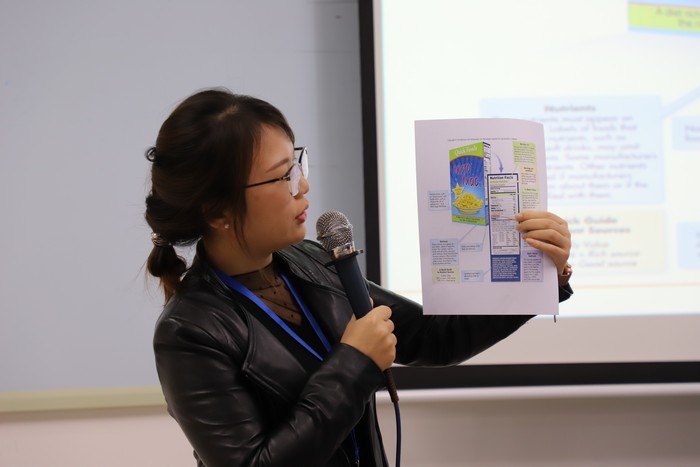 余莹瑶作为食品科学与工程15届校友,自港中文毕业后,曾就职于深圳华大基因。18年4月与朋友开始创业,成立了健康管理公司。余莹瑶主要是负责健康课程,教学员如何将营养和实践相结合,同时开了营养搭配的烹饪课程。余莹瑶为在座学生讲述了自己为何选择健康这条道路,分享了初入社会的艰辛,也谈到自己选择坚持学食品的初衷,最后再结合自身经历向同学们解读了“坚持做自己”的意义和内涵,鼓励同学们在前进的道路上勇敢逐梦青春。