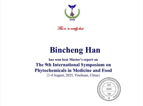 韩宾乘此次获奖,不仅是对其个人学术能力与研究成果的肯定,也彰显了其所在科研团队在食品科学与天然产物研究领域的深厚实力。未来,相信在徐宝军教授的带领下,该团队将继续深耕相关领域,产出更多高质量的研究成果,为推动医药与食品行业的科技创新与发展贡献力量。同时,这一成果也将激励更多青年科研工作者投身学术研究,勇于探索未知,在专业领域发光发热。