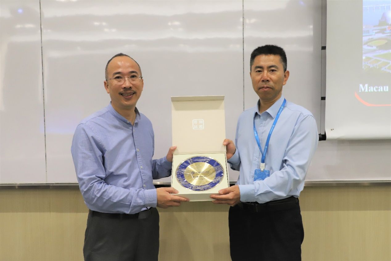 徐宝军教授向Professor Ming Yuen Simon Lee赠送纪念品并合影