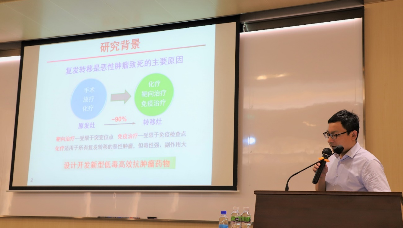 分享会上,许教授主要介绍RNAi技术作为为高效的、被广泛应用于基因功能分析和多种疾病(如恶性肿瘤和乙型肝炎)的临床或临床前治疗的转录后基因沉默的工具,所面临的临床应用受到的限制;RNAi技术临床转化的关键——靶点并构建安全高效的体内递送载体是;以及在恶性肿瘤关键治疗靶点的鉴定及siRNA体内递送载体构建。其中,许教授首先介绍了当下肿瘤治疗的常见问题,治疗手段,和常用临床方法的缺陷,为同学们普及背景知识,并以此阐明肿瘤治疗基础研究的方向与目的。紧接着,许教授介绍了本次讲座主题之一——纳米药物领域在肿瘤质量方面的优势及争议。其中,为何先进如纳米药物也没能提高肿瘤患者生存率就是许教授的中心研究。
