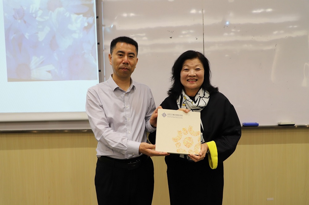活动最后,生命科学系系主任徐宝军教授向钟金淑子教授赠送UIC纪念品并邀请她与师生合影留念。