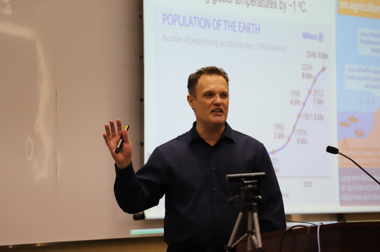 在讲座中,Geoffrey教授严谨而不失风趣的介绍了纳米技术的国际发展现状与趋势。他在报告中指出,纳米技术是现代科技发展不可或缺的一部分,我们对纳米技术的依赖将在21世纪继续增长。随后他向师生们列举了纳米技术的广泛应用,其中该技术在检测领域取得的成绩尤为突出,包括重金属、果蔬表面的农药残留,以及病毒和生物学标记物。