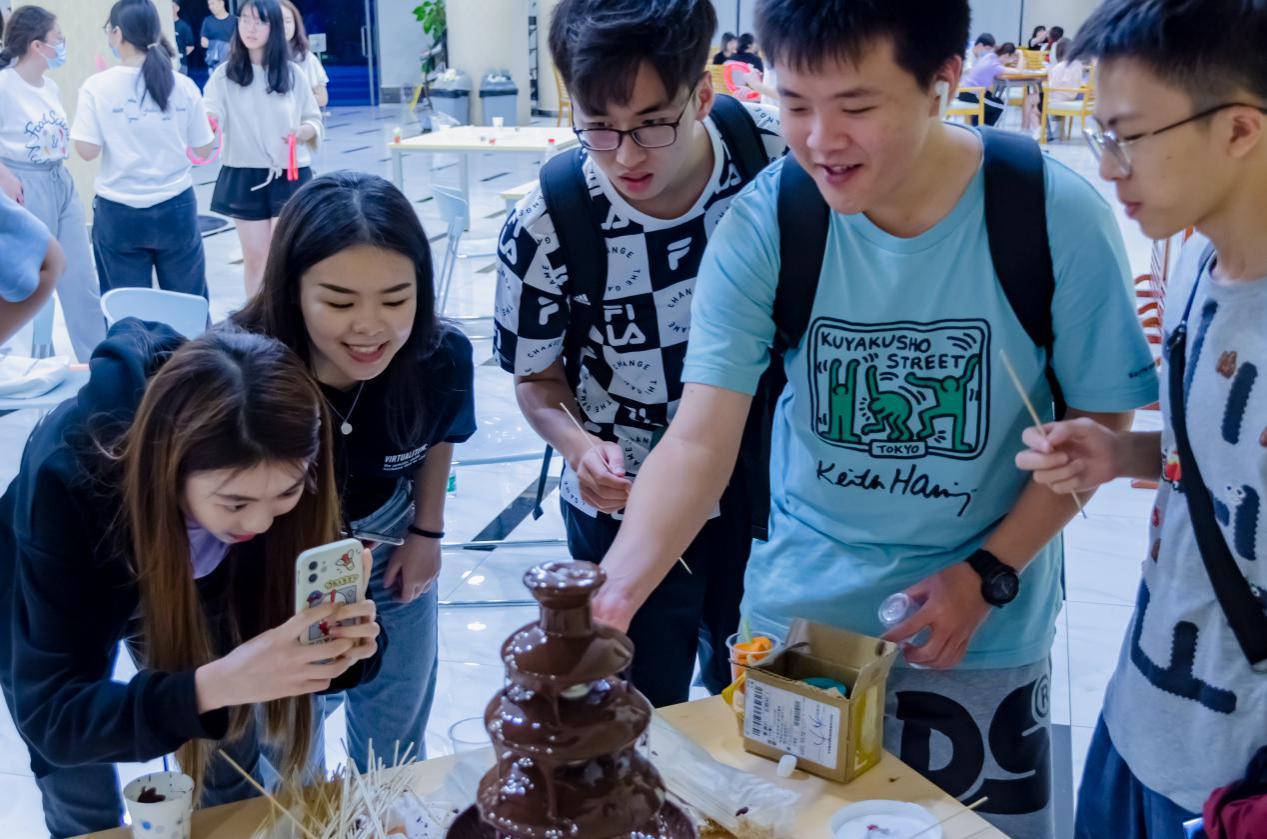 巧克力喷泉,也是这次活动最受欢迎的摊位之一。无论是在“Guess what you get”中获得的食材,还是在心动角获得的面包,都能来这里蘸巧克力酱,感受不同食材与巧克力碰撞带来的乐趣。