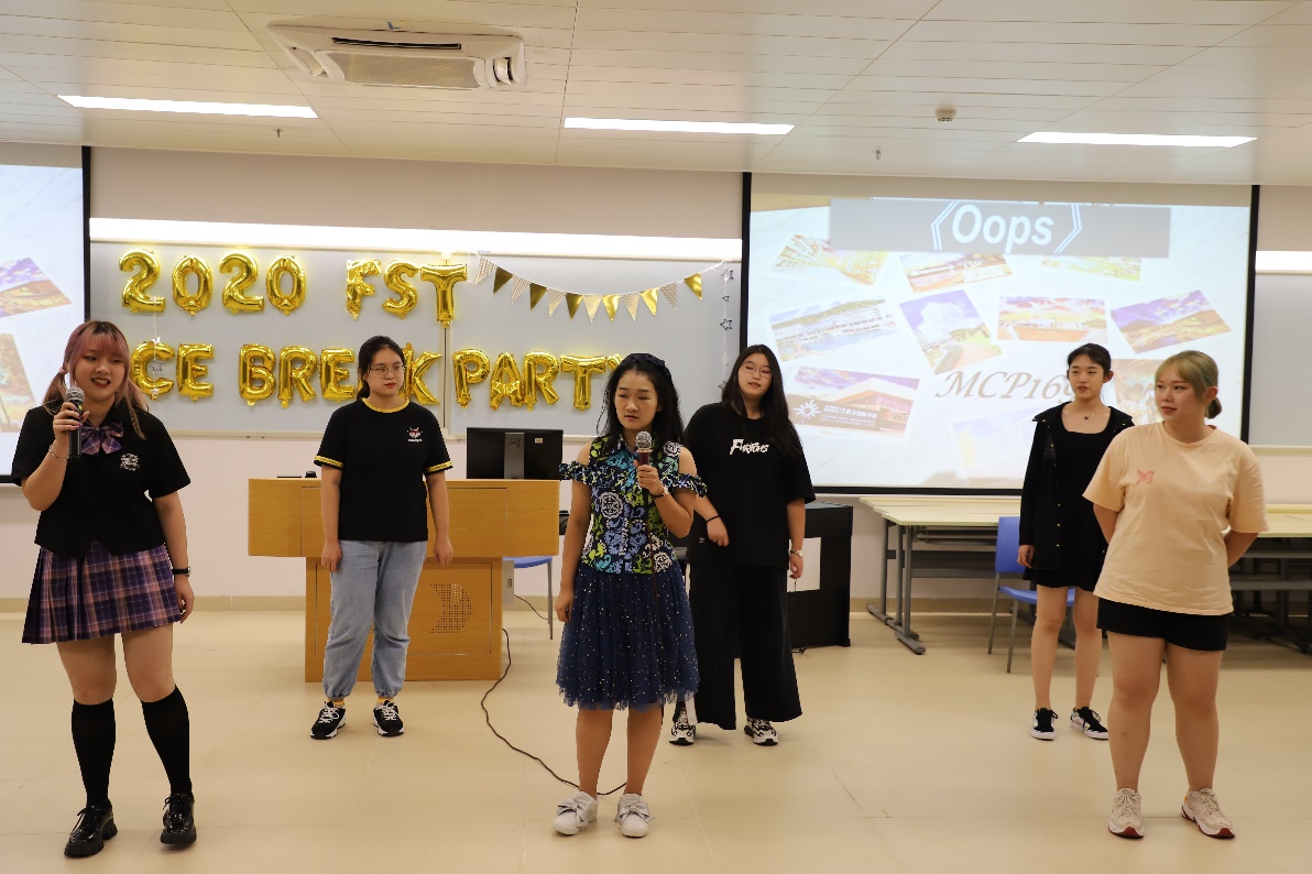 参加这次破冰晚会的嘉宾有理工科技学部副院长雷波教授(下图左三)、食品科学与工程专业课程主任及MCP168导师徐宝军教授(左二)、MCP170导师胡美怡助理教授(左一)、MCP171导师谢启荣助理教授(右二)和MCP169导师何文猛助理教授(右一)以及全体助理导师,与“00后”新生们共同欣赏了演出。
