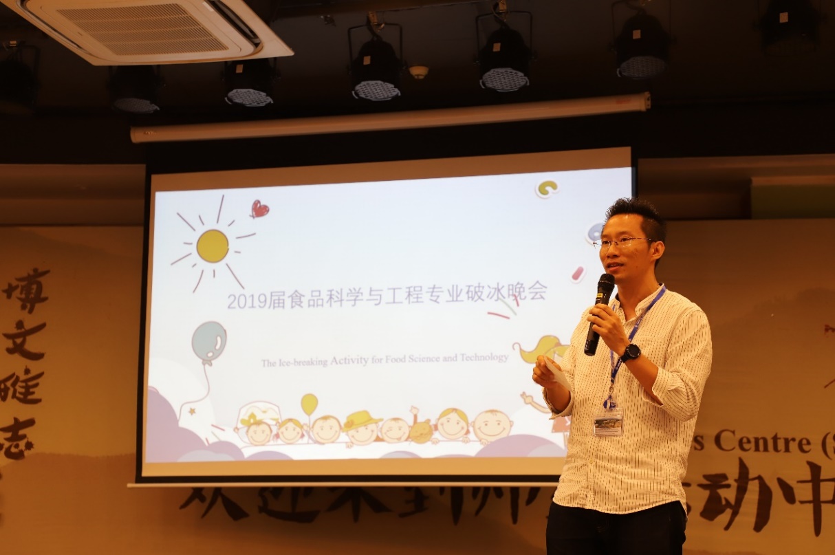 2019年9月19日晚,食品科学与工程专业的新生破冰晚会在师生活动中心举行。西装革履的男主持人,与美丽大方的女主持人,共同将晚会拉开序幕。