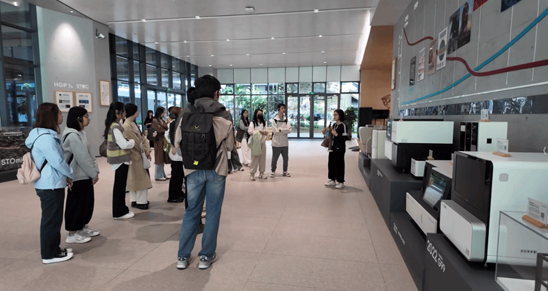 During the tour of gene sequencing laboratories, participants observed the operation of high-throughput sequencers and interacted with research staff. These engagements helped students understand how genomic technologies are translated from basic research into clinical and industrial applications, thereby providing essential scientific support for human health.
