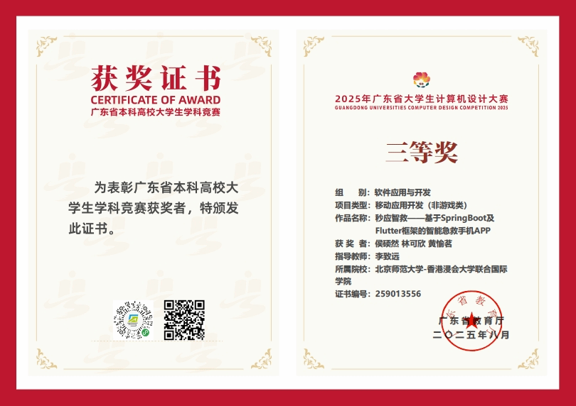 此前,BNBU理工学子在2025年广东省大学生计算机设计大赛表现优异,在大赛省级赛中共计荣获二等奖3项,三等奖3项。
