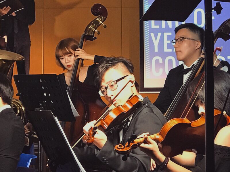 翁铭泓参加学校乐团表演