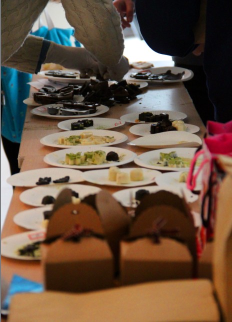同学们在领取巧克力原浆