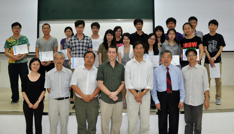 方教授与理工科技学部的教授为获得2012美国大学生数学建模一等奖的同学颁奖