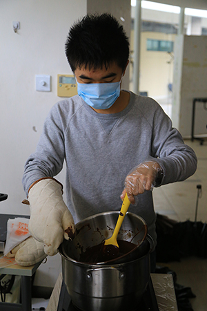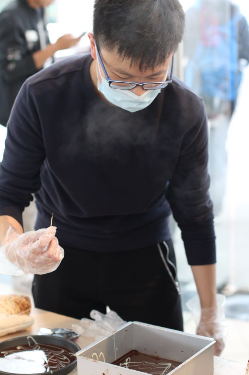 在这里,同学们自己动手将巧克力酱入模,待冷冻成型之后,他们还可以根据喜好撒上抹茶粉或者椰蓉。