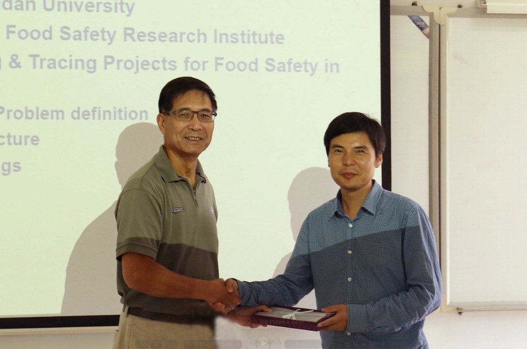 作为复旦大学微电子学院自动识别实验室副主任,王教授向同学们介绍了实验室在食品安全追踪系统中所取得的进展;并通过一个短片,介绍了如何通过传感器监控食品生产及流通的精细化管理及实时监控,减少整体流通成本并控制损耗,通过智能设备扫码,消费者可以查询到食品的各类信息。除此之外,王教授还为同学们介绍了珠海(横琴)食品安全研究院的基本情况及中国国家食品安全跟踪项目。