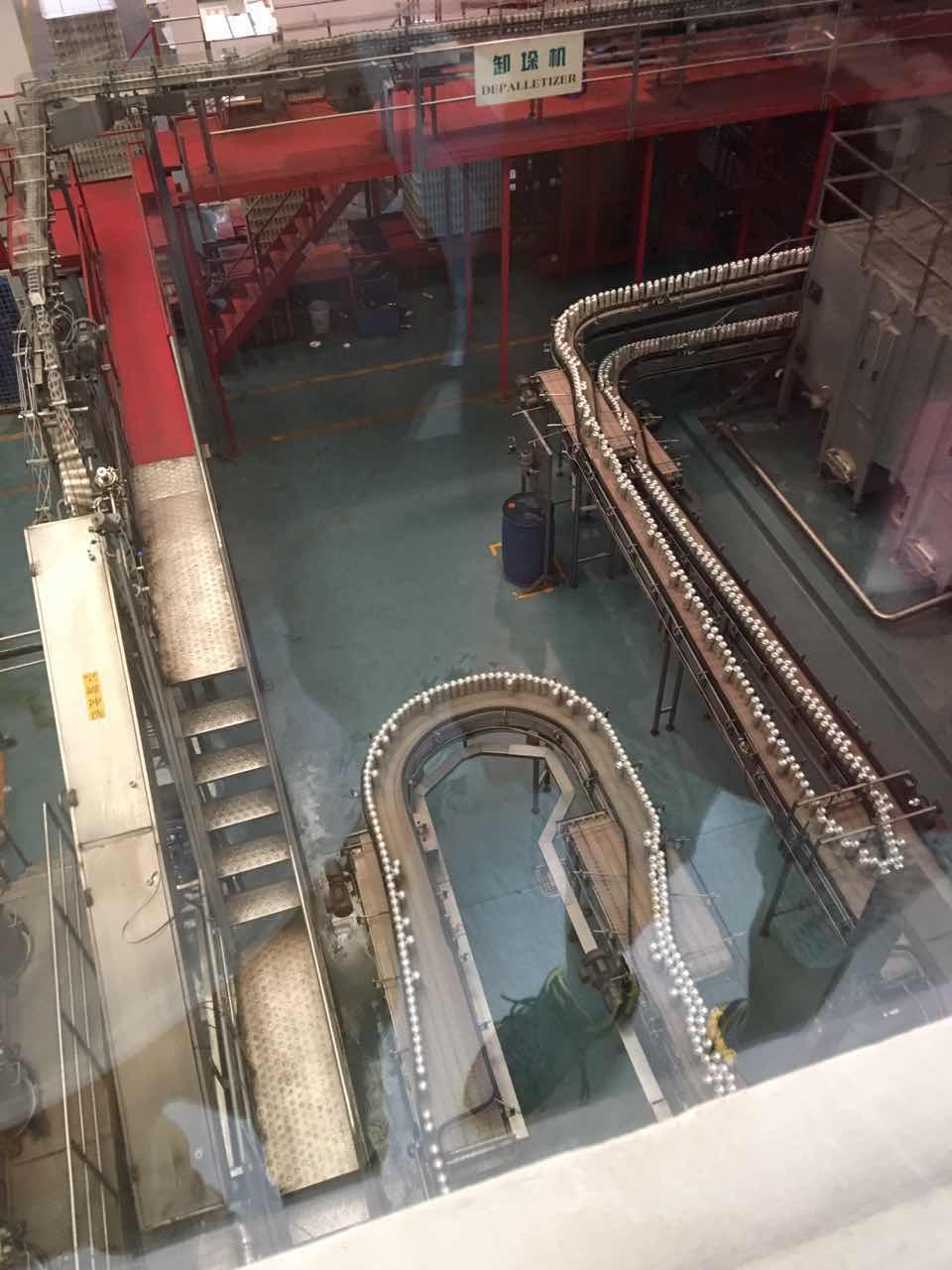 生产线上已经装瓶的啤酒