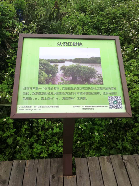 近日,淇澳红树林保护区木栈道两侧增设了80个图文并茂的物种标识牌,上面印有保护区内常见动植物物种“二维码”。游客用手机微信扫描二维码,就会自动跳转到该物种的详细介绍,极大的丰富了标识牌的信息量,受到了市民的欢迎。该电子资讯由UIC师生制作。
