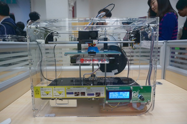 在揭牌仪式后,众多慕名而来的师生来到实验室一看究竟。实验室里,3D打印机正井然有序地工作着。旁边的架 子上摆着由同学们自己设计和打印出来的3D模型。计算机专业的同学向观众们介绍各种不同的3D建模方式和软件。CST的刘玉老师也通过PPT详细介绍各款 3D打印机,并演示了如何做出一个3D打印模型。