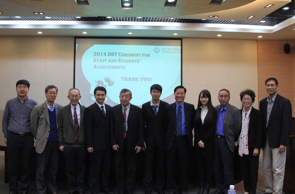 理工科技学部(DST)于11月19日为 2014年度取得杰出成绩的教职员及学生举行了颁奖典礼,表彰统计专业方开泰教授荣获泛华统计协会2014杰出成就奖,以及计算机科学与技术专业2011 级的林暄、邓楚然、陈佳航同学荣获第七届英特尔杯大学生电子设计竞 赛嵌入式系统专题邀请赛三等奖。