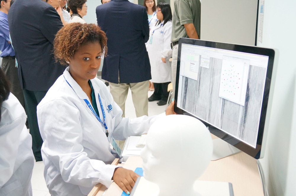 应用心理学专业的师生在为大家演示EGI脑电图系统