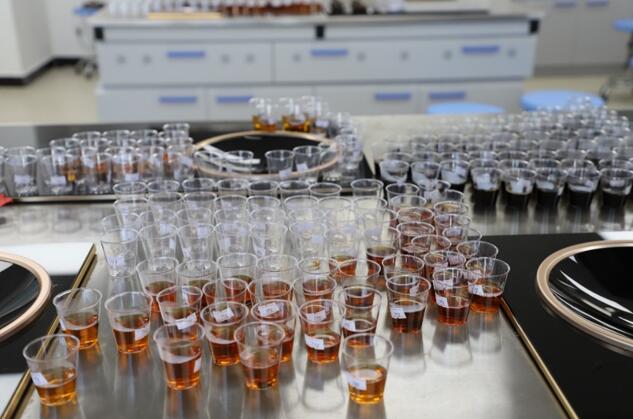 在实验室中,参与者认真品鉴每一款茶和咖啡,并且记录闻香、品香的感觉,进行专业评测。