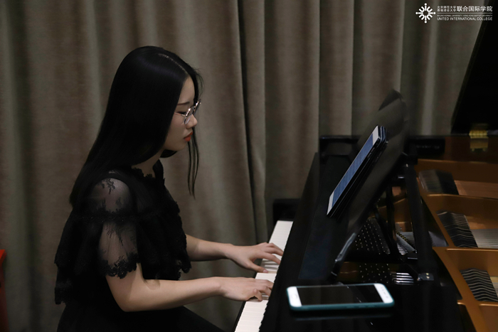 晚宴过程中,大四媒体艺术与设计专业的王婕同学、大三翻译专业的欧郁臻同学进行了钢琴伴奏。