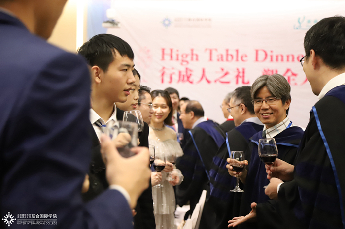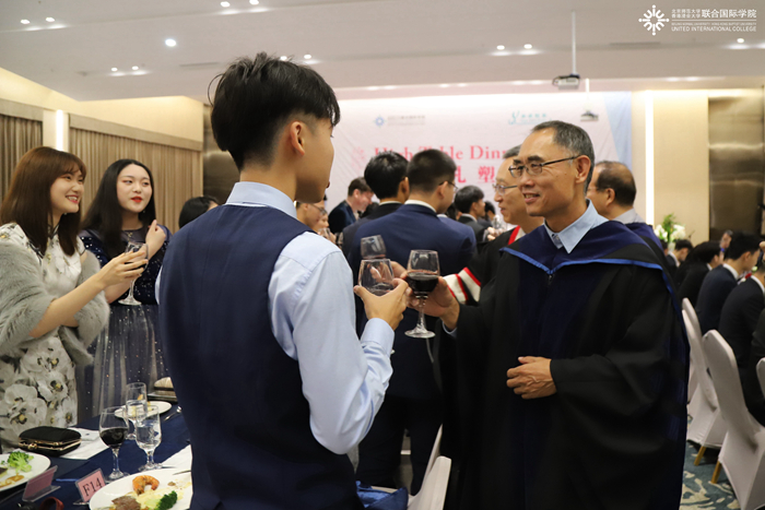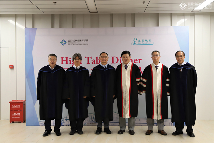 出席本场晚宴的高桌嘉宾还有:北师港浸大学术副校长陈致教授、副校长张聪教授、教务长李建会教授、理工科技学部院长黄华雄教授,财务及行政执行总裁陈立信先生。