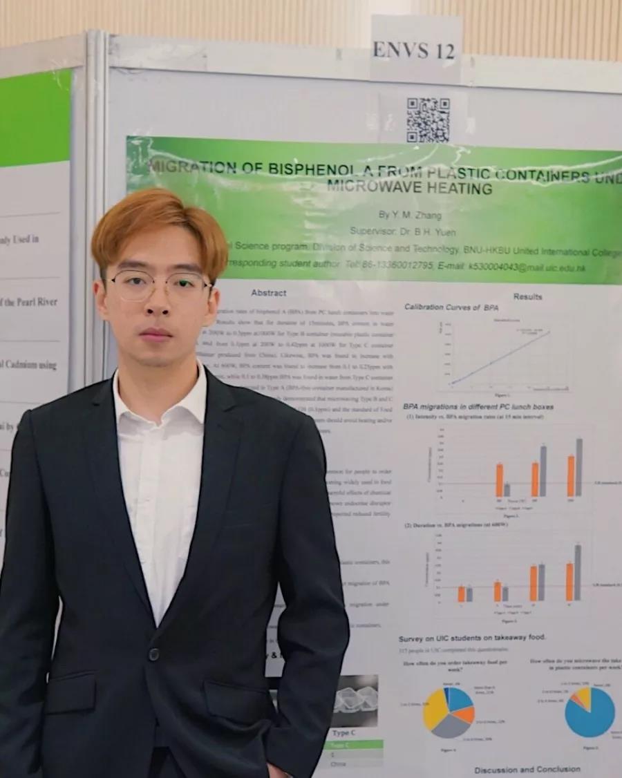 双酚A是一种用于塑料生产的化学物质,它的作用主要体现于使塑料更加结实、透明、轻便。但是双酚A会影响雄性激素并进一步影响男性生殖系统。经过多次与导师讨论后,张同学决定调查国内外市场上的饭盒是否存在过量的双酚A,并且想测试学校同学们点外卖用到的一次性饭盒所含双酚A是否超标。在学校实验室进行了一个月实验后,结果表明,国外生产的塑料饭盒中不存在双酚A,因为他们已经改用其他物质制塑料。但是国内生产的饭盒包括北师港浸大同学们日常所点外卖的饭盒经过加热五分钟后产生了超标2-3倍的双酚A成分。因此,他呼吁大家在日常饮食或选择塑料制品时要更加谨慎,不要直接使用微波炉加热。