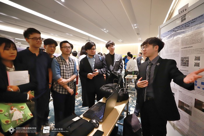 4月10日,在北师港浸大(UIC)理工科技学部一年一度的第七届学生研究成果海报展上,共展出了72个学生研究项目,涉及老年人心理健康、房价走势预测、食品安全、塑料污染、医学检测等题目,现场同学们用英语向大家讲解他们的研究,还有校内外评委进行打分。