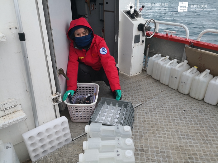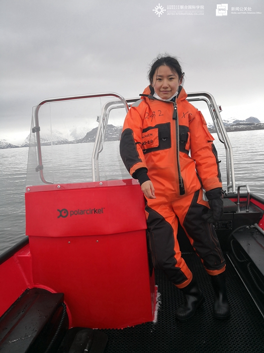 UIC 2010届环境科学专业毕业生林梵就是科考队中的一员,也是队中唯一的女生。她代表国家海洋局南海分局所属的南海调查技术中心参与此次考察。看着舷窗外白茫茫的一片,她想起李白的一句诗“地白风色寒,雪花大如手”。