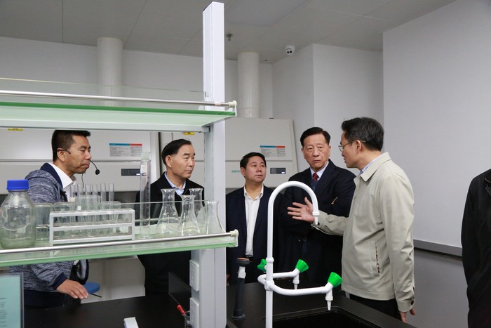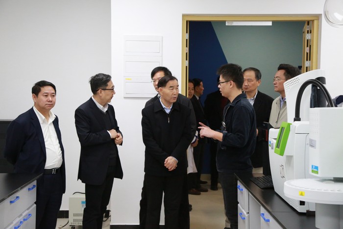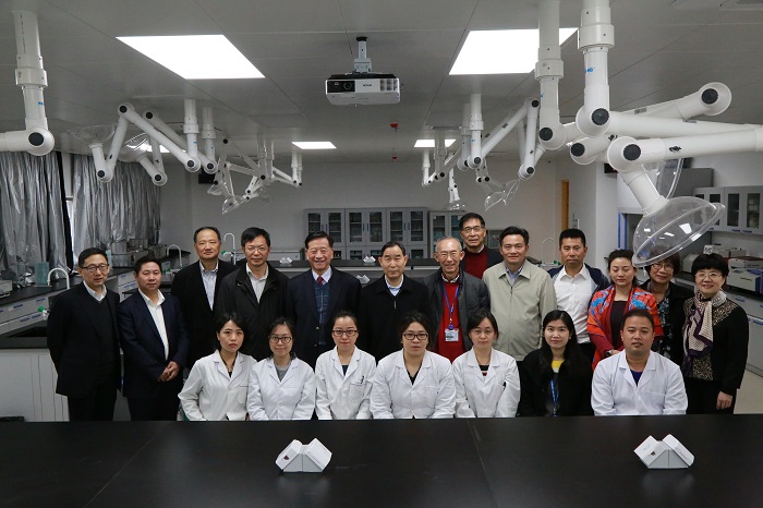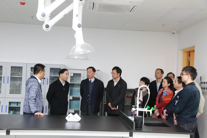 朱保成一行在吴清辉校长、雷波的带领下参观了食品科学与工程的食品加工实验室、食品科学研究实验室等教学实验室,健康食品开发实验室等研究实验室及检测中心。