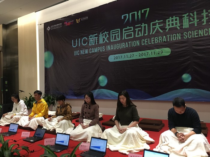 11月27日上午,UIC新校园T1多功能厅传来悠扬的管弦乐声及阵阵欢笑声,许多同学利用课余时间兴致勃勃地赶往现场,并招呼同伴一起去“破案”。原来,由理工科技学部主办的UIC新校园启动庆典科技周于今日开幕,吴清辉校长、张聪副校长、关利平协理副校长、李建会教务长等校领导出席开幕式,并与同学们一同参与了科技周首日活动“心理日”,体验了科学的奥妙。
